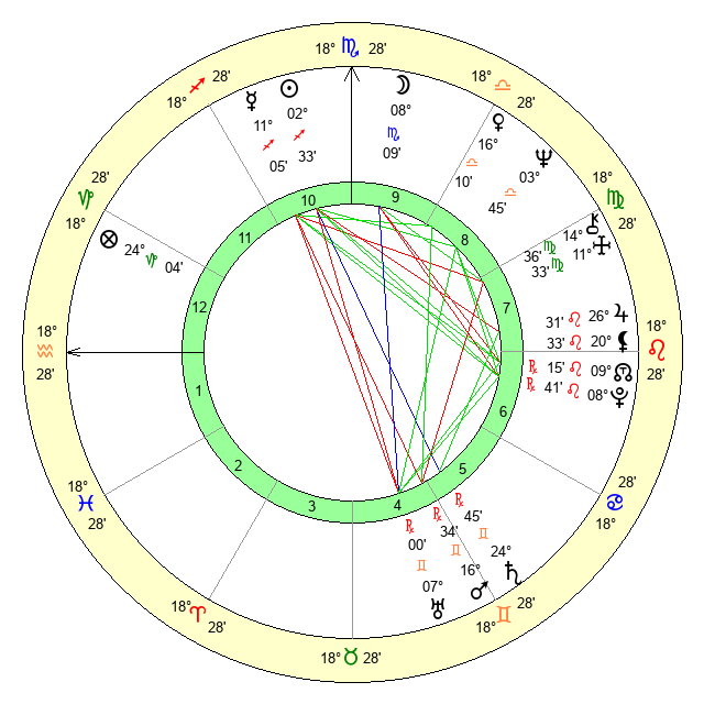 | Moon | 8 Scorpio 7 | 3 Aquarius 30 | 6 Scorpio 55 |