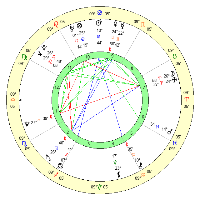 | Sun | 10 Cancer 45 | 11 Cancer 4 | 16 Virgo 58 |