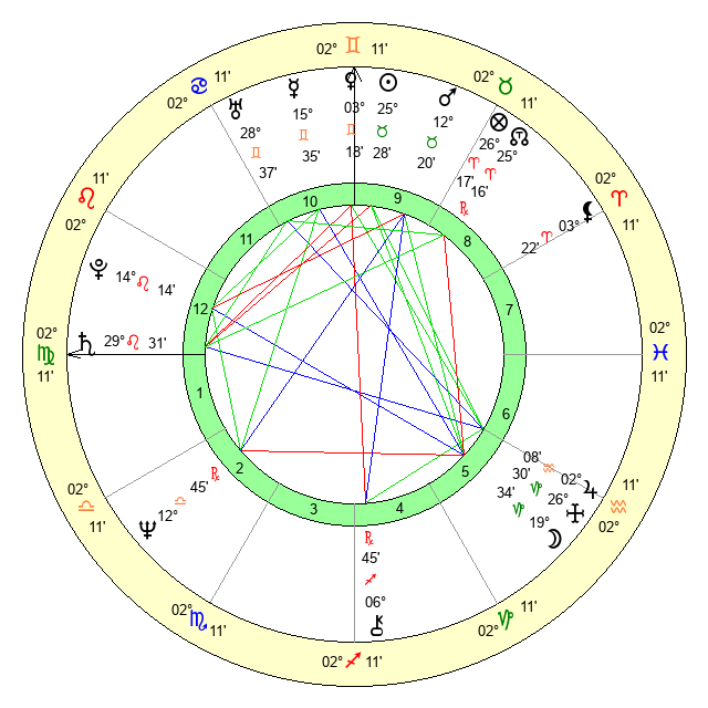 | Saturn | 0 Virgo 1 | 29 Pisces 13 | 6 Virgo 0 |