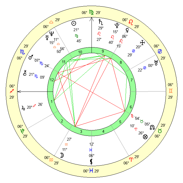| Saturn | 29 Leo 54 | 28 Pisces 53 | 6 Virgo 26 |