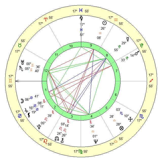 | Venus | 17 Pisces 52 | 7 Aries 6 | 26 Gemini 48 |
