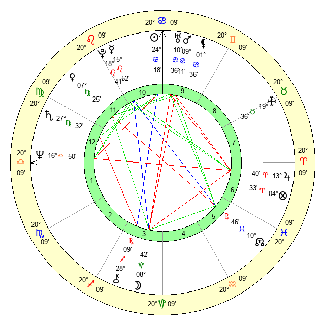 | Sun | 24 Cancer 18 | 25 Cancer 22 | 5 Libra 44 |