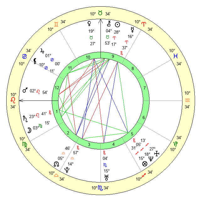 | Moon | 3 Virgo 10 | 1 Capricorn 18 | 1 Gemini 24 |