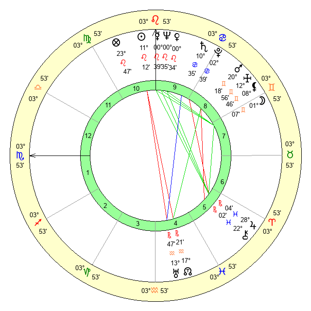 | Sun | 11 Leo 12 | 12 Leo 34 | 29 Scorpio 19 |
