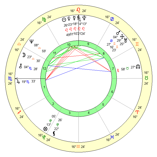 | Moon | 23 Libra 37 | 26 Cancer 17 | 26 Leo 25 |