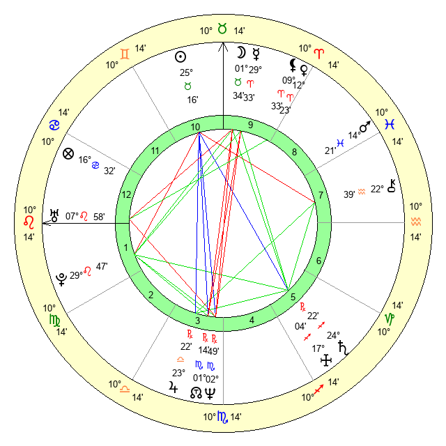 Pluto | 29 Leo 46 | 3 Aquarius 46 | 0 Virgo 55 |