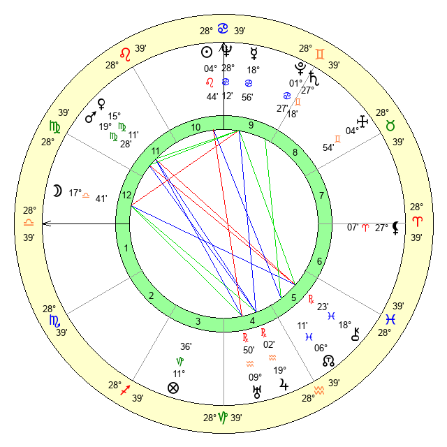 | Moon | 17 Libra 42 | 23 Virgo 28 | 9 Scorpio 50 |