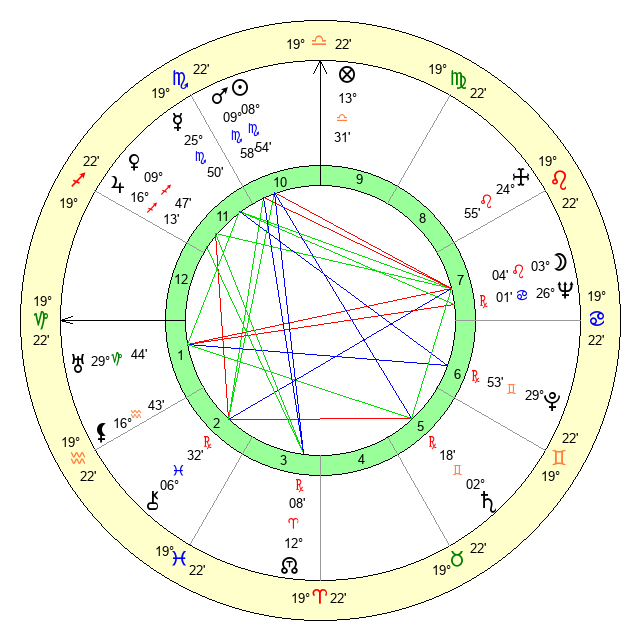 | Jupiter | 16 Sagittarius 0 | 25 Cancer 0 | 10 Capricorn 23 |