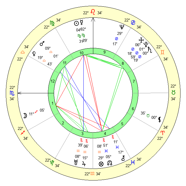 | Mercury | 2 Virgo 30 | 21 Leo 4 | 14 Sagittarius 25 |