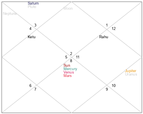 | Ketu | 0 Virgo 34 | 13 Virgo 39 | 24 Leo 41 |