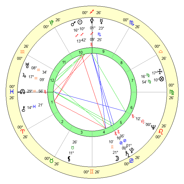 | Neptune | 0 Leo 12 | 29 Pisces 22 | 27 Cancer 43 |