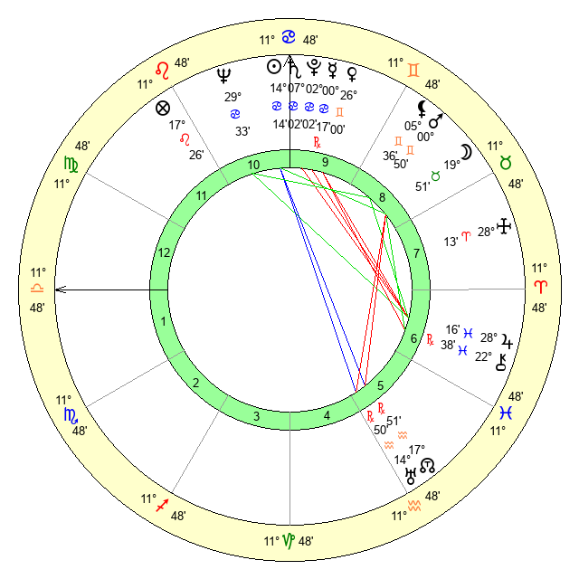 | Mars | 0 Gemini 50 | 11 Virgo 32 | 9 Leo 17 |