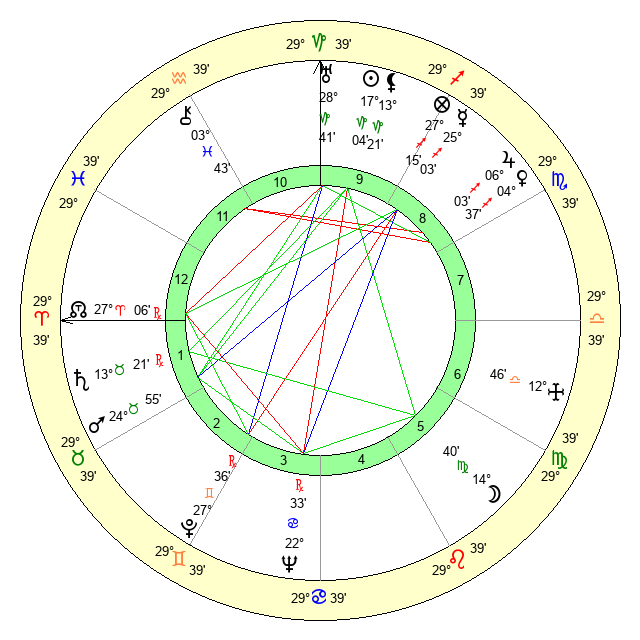 | Moon | 14 Virgo 31 | 26 Virgo 12 | 14 Scorpio 9 |