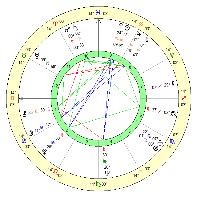 | Saturn | 2 Aries 40 | 18 Pisces 33 | 13 Aries 2 |