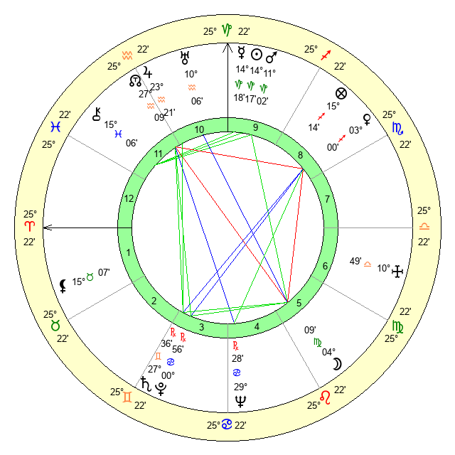 | Moon | 4 Virgo 8 | 16 Leo 8 | 25 Virgo 24 |