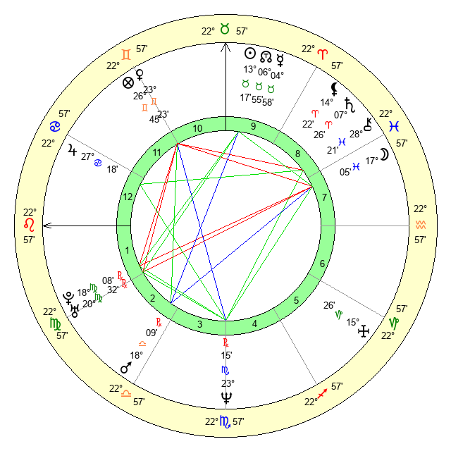 | Moon | 17 Pisces 3 | 12 Leo 56 | 27 Aries 8 |