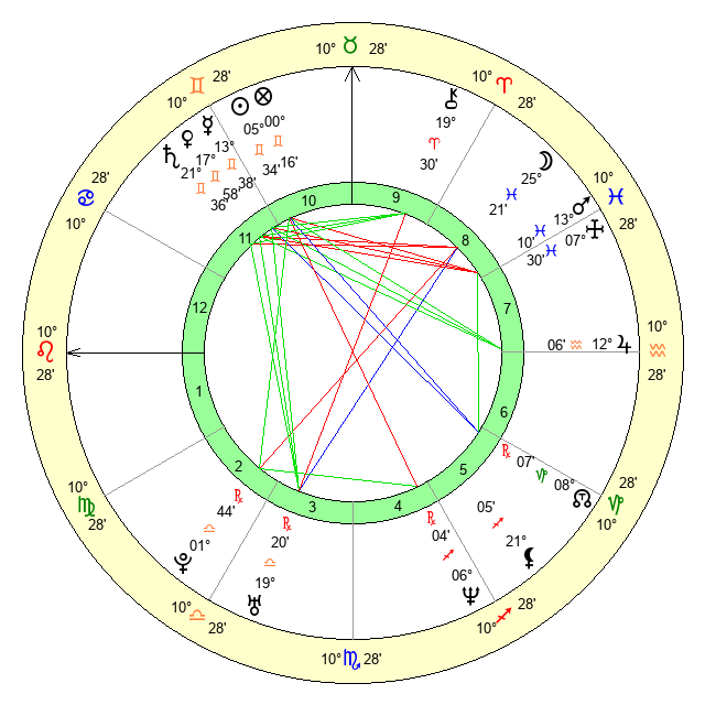 | Jupiter | 11 Aquarius 55 | 26 Gemini 53 | 8 Aquarius 35 |