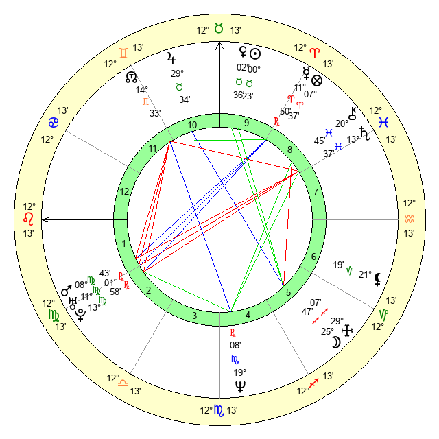 | Mars | 8 Virgo 43 | 1 Leo 3 | 25 Virgo 30 |