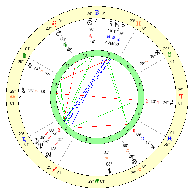 | Mercury | 16 Cancer 43 | 11 Leo 24 | 17 Libra 5 |