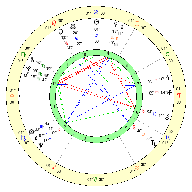 | Sun | 1 Cancer 30 | 2 Cancer 29 | 0 Virgo 48 |