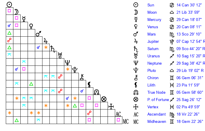 Moon | 21 Libra 36 | 23 Scorpio 55 | 16 Aries 2 |