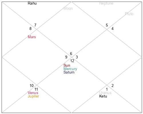 | Rahu | 9 Scorpio 55 | 26 Pisces 32 | 5 Scorpio 21 |
