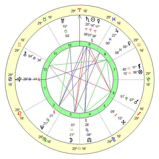 | Moon | 21 Libra 1 | 10 Cancer 26 | 14 Sagittarius 19 |