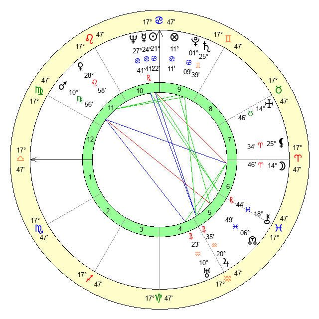 | Sun | 21 Cancer 22 | 22 Cancer 30 | 9 Scorpio 26 |