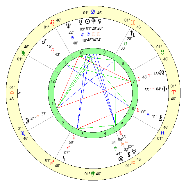 | Moon | 24 Libra 40 | 8 Gemini 40 | 12 Sagittarius 54 |