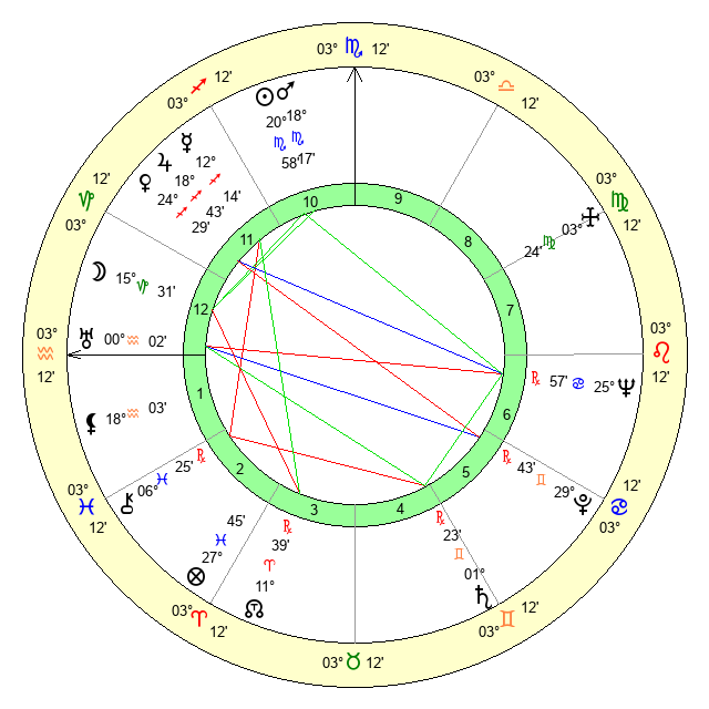 | Moon | 15 Capricorn 40 | 9 Virgo 1 | 1 Pisces 21 |