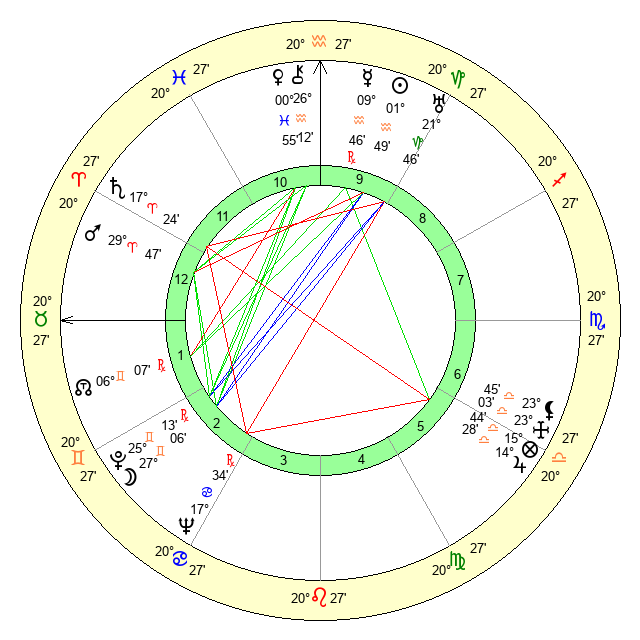 | Moon | 27 Gemini 11 | 12 Scorpio 2 | 14 Virgo 34 |