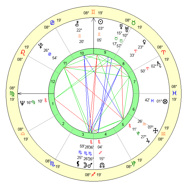 | Sun | 3 Gemini 5 | 3 Gemini 46 | 27 Leo 13 |