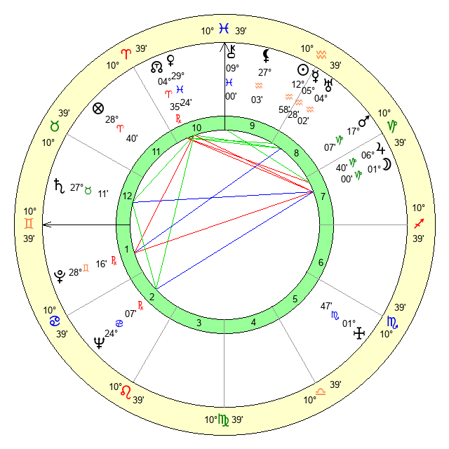| Saturn | 27 Taurus 51 | 17 Pisces 30 | 7 Gemini 36 |