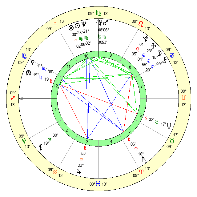 | Neptune | 21 Virgo 3 | 0 Aries 52 | 23 Virgo 18 |