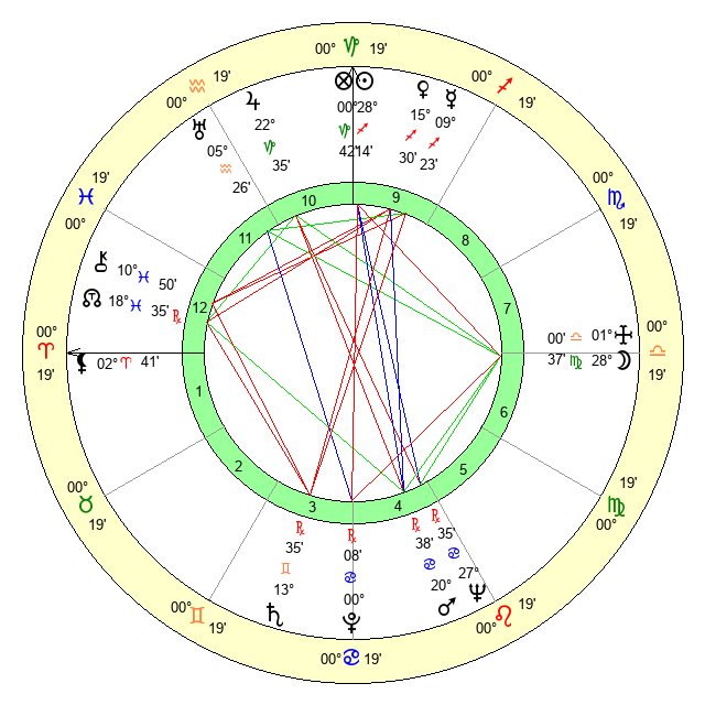 | Moon | 28 Virgo 35 | 6 Capricorn 10 | 7 Scorpio 21 |