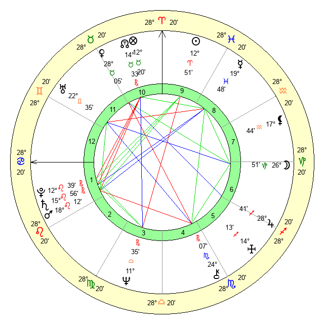 | Moon | 26 Capricorn 46 | 12 Gemini 27 | 23 Scorpio 39 |