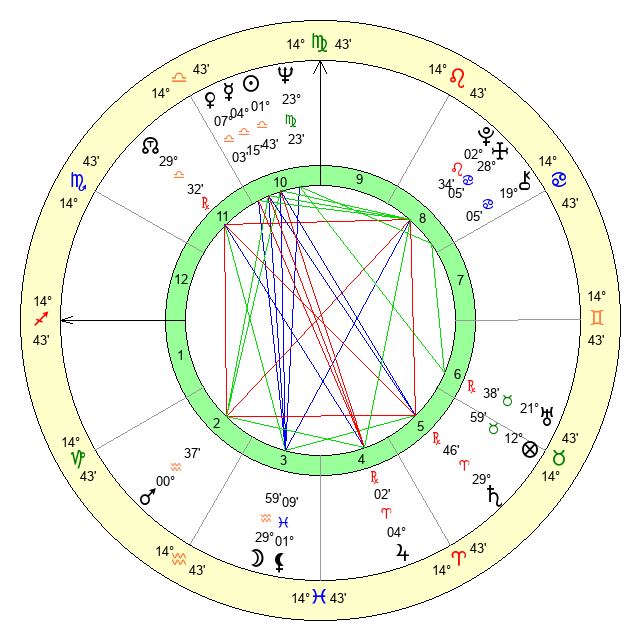 | Neptune | 23 Virgo 24 | 0 Aries 41 | 25 Virgo 30 |