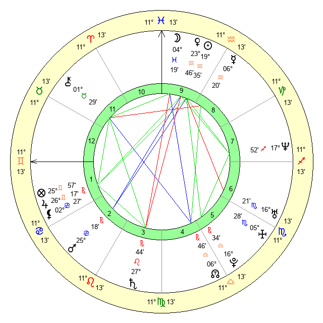 | Moon | 4 Pisces 19 | 3 Cancer 23 | 15 Scorpio 1 |