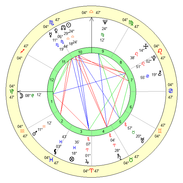 | Mars | 11 Aquarius 13 | 18 Scorpio 5 | 5 Aries 55 |
