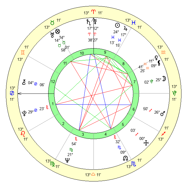 | Pluto | 29 Cancer 23 | 3 Aquarius 14 | 29 Cancer 54 |