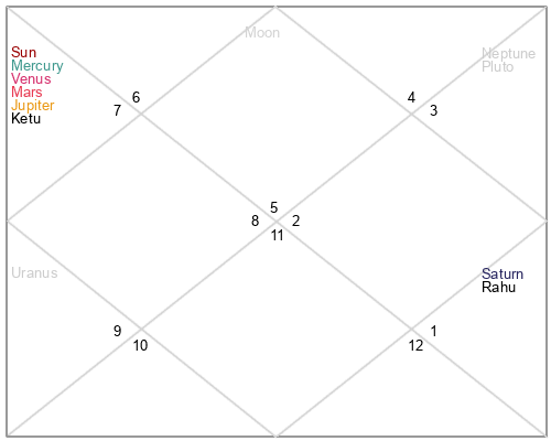 | Ketu | 19 Scorpio 53 | 15 Virgo 37 | 13 Scorpio 48 |