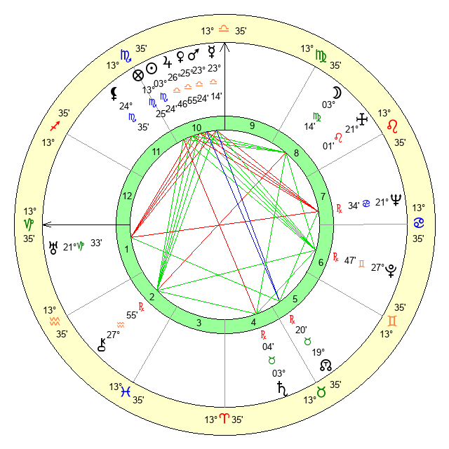 | Moon | 3 Virgo 13 | 12 Capricorn 8 | 14 Scorpio 10 |