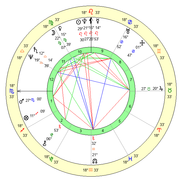 | Moon | 22 Virgo 13 | 23 Leo 4 | 3 Gemini 20 |