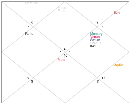 | Rahu | 7 Scorpio 19 | 23 Pisces 56 | 2 Scorpio 46 |