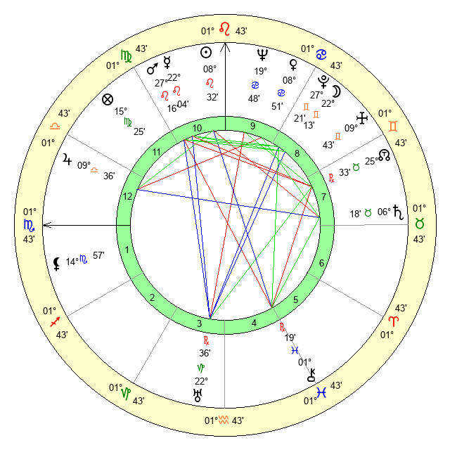 | Mars | 27 Leo 16 | 26 Virgo 44 | 12 Scorpio 15 |