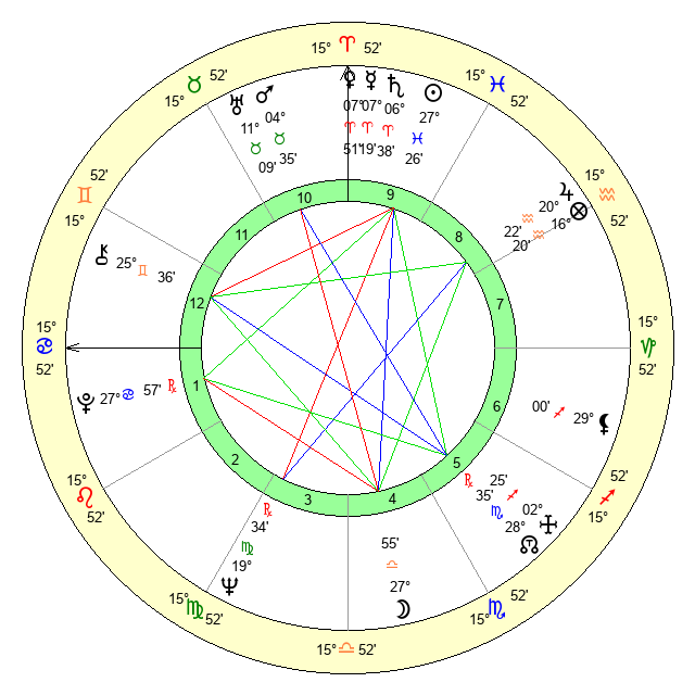 | Pluto | 27 Cancer 57 | 3 Aquarius 18 | 28 Cancer 39 |