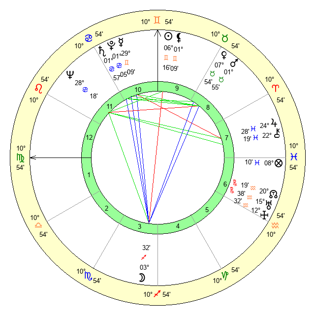 | Sun | 6 Gemini 16 | 7 Gemini 37 | 21 Virgo 45 |