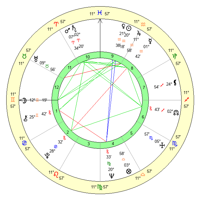 | Jupiter | 11 Aquarius 54 | 11 Gemini 19 | 29 Aquarius 8 |