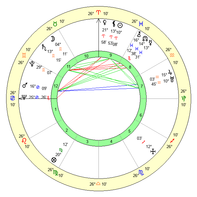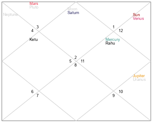 | Venus | 21 Aries 58 | 27 Pisces 41 | 5 Virgo 57 |