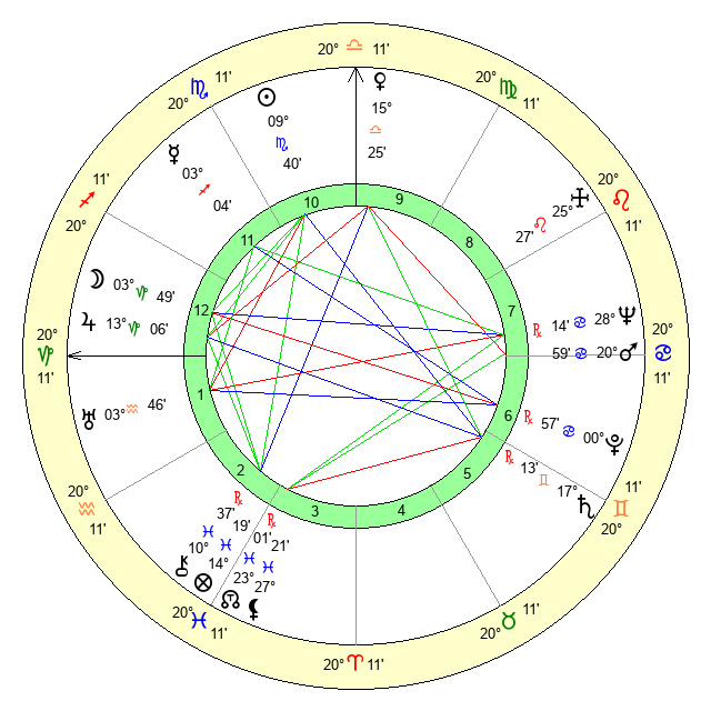 | Sun | 9 Scorpio 40 | 10 Scorpio 31 | 3 Pisces 15 |